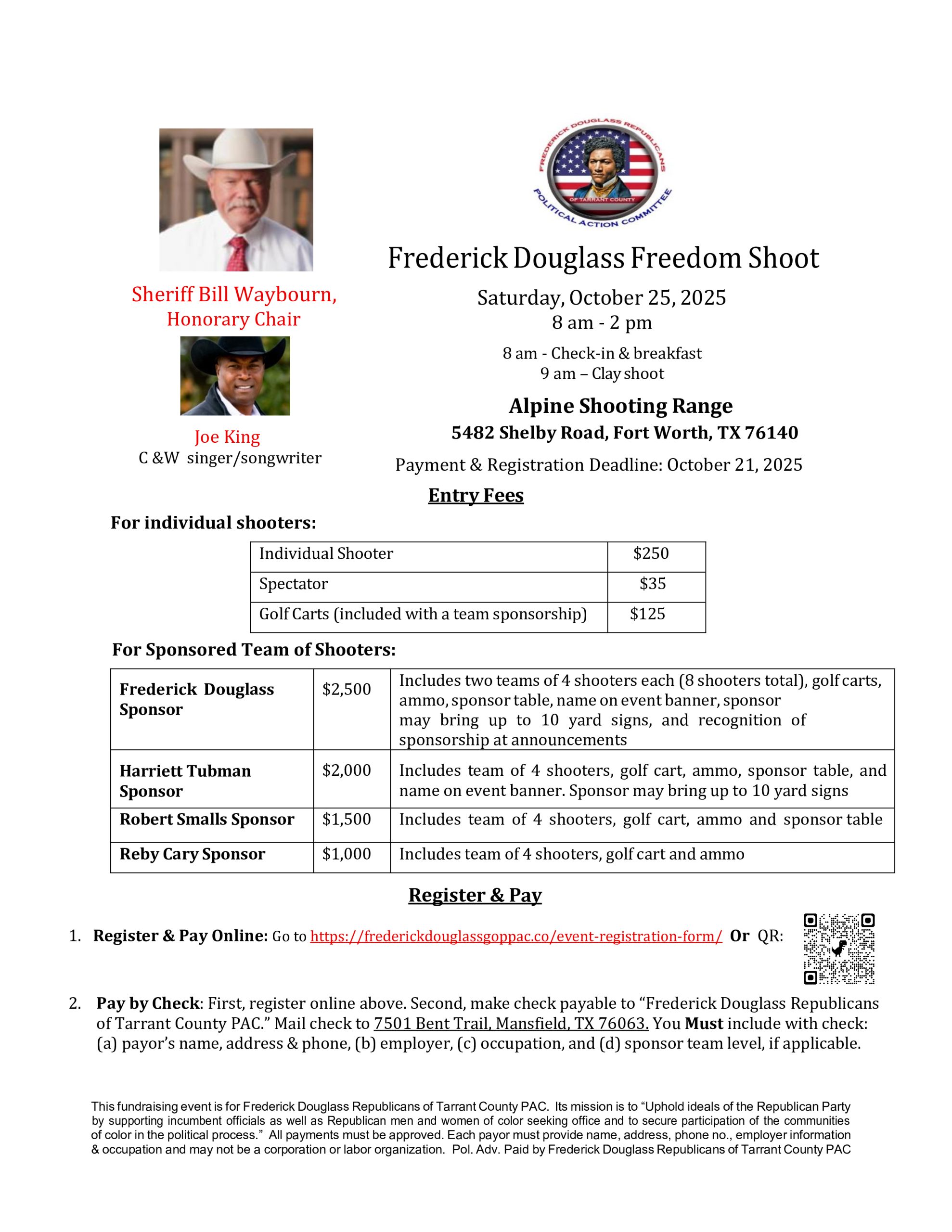 Disclaimer: Established in 1985, the Frederick Douglass Republicans of Tarrant County is not affiliated with or part of any other organization named Frederick Douglass. The Frederick Douglass Republicans of Tarrant County is a political organization recognized by the IRS.